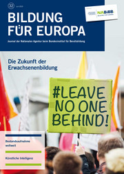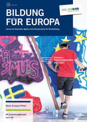 Unser Journal „Bildung für Europa“ erscheint zweimal jährlich kostenlos. Es informiert Sie zu ausgewählten Schwerpunktthemen über die aktuellen Entwicklungen im EU-Programm Erasmus+ und in der europäischen Bildungszusammenarbeit.